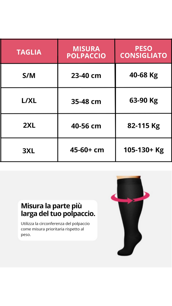 🩶 Non importa la tua taglia: se la circonferenza del polpaccio è scelta correttamente, la calza ti calzerà perfettamente.